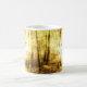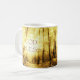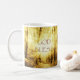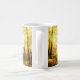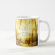 La taza con DIOS BENDICE la afirmación sobre mi foto del oro Sun a través de la trayectoria alineada árbol