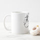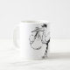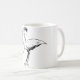 Este diseño es una cigüeña que sostiene a un bebé. La cigüeña tiene al bebé en una manta y lo sostiene en su pico. Esta cigüeña que sostiene un diseño de bebé se ve genial en esta taza