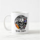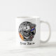 Añada su nombre a esta taza de café que ofrezca un peluquero fresco Skulll con su maquinilla de afeitar eléctrica llameante y al peluquero poste delante de a metálico-como marco circular. Dado derecho "el peluquero," este producto es un gran regalo para cualquier peluquero, el hairstylist, su dueño de peluquería de caballeros amistoso de la vecindad, o cualquier persona con una pasión feroz para cortar o diseñar el pelo. La herramienta del arreglo para requisitos particulares permite que usted añada el texto o que cambie colores de fondo para resolver su estilo personal. Visite www.zazzle.com/barberskull para ver los cráneos temáticos de un peluquero más fresco en muchos más diversos productos.