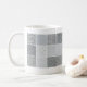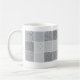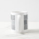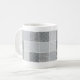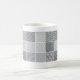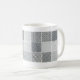 Los paneles cuadrados de las pantallas de punto sobrepuestas de negro y del gris crean los modelos del moaré que cercan esta taza.