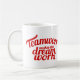 El equipo rojo del lema del texto que la taza lee trabajo en equipo hace el trabajo ideal. Gran oficina, agradezca le o el regalo de motivación. Diseñado por www.mylittleeden.com en zazzle