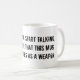 " Antes de que usted comienza a hablar, recuerde que esta taza también dobla como arma." Esta taza es la de manera perfecta de decir a ese individuo que mastica su oído de ése que usted tiene una taza de café de cerámica y que está dispuesto a utilizarla.