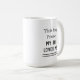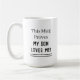 Mi Hijo Me Ama Cita Mug. ¡A papá simplemente le encantará esta frase especial y memorable que muestra lo mucho que su hijo lo quiere! Un gran regalo para cualquier padre especial. El texto de dos tipos de letra es "¡Esta taza prueba que mi hijo me ama!" con un doble subrayado.