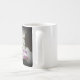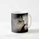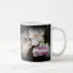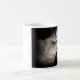 Un gato británico de Shorthair del tabby de plata precioso con el eyecolour anaranjado en esta taza única del gato con el texto del "feliz cumpleaños" en las flores blancas y el fondo negro de la foto. Un regalo perfecto para los amantes del gato. Personlize por favor con su propio texto. Foto original del gato por el mmersdesign.