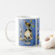 Tres imágenes de un gato azul lindo (y útil) en una tolerancia de la noche estrellada esta taza.