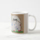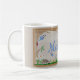 Una taza del cuento de hadas con toadstools, mariposas y flores. Hay un erizo en la hierba y un gato negro bonito en el árbol. Esta imagen se toma a partir de la una de mis pinturas originales que fue pintada sobre la madera desigual, usted puede considerar la viruta y las pinceladas. Usted puede personalizarla con un nombre o un "mejor profesor" etc