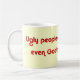 La taza hilarante pero grosera lee a gente fea es prueba que incluso dios necesita una risa en letras rojas con un fondo amarillo y frontera roja. Si usted necesita una risa o una gran idea del regalo de la mordaza, compre esta taza fea de la gente. Cambie el tamaño, el color, o el estilo feo de la taza de la gente si usted quiere. Hay tazas del viaje de la gente y steins feos de la cerveza, también. Si por alguna razón usted quiere añadir su propio mensaje o un nombre, usted puede incluso hacer eso. El fondo amarillo y la frontera roja se pueden cambiar o suprimir totalmente.
