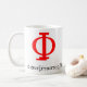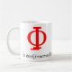Sócrates dijo que "la vida no examinada no está digno de la vida", y eso está escrita alrededor de la base de esta taza, junto con dos símbolos capitales de la phi, la primera letra de la palabra "filosofía" y el símbolo con milenios de la lucha filosófica.