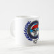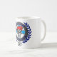 El diseño de cráneo y círculo está coloreado en azul y gris en un estilo casual.