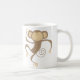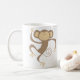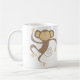 Los niños y los amantes del mono adorarán esta taza linda que ofrezca un ilustracion de una sonrisa, agitando, pequeño mono marrón.