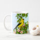 ¡Esta taza de café original preciosa de la bella arte que ofrece un Goldfinch americano masculino hace una gran idea para un regalo para todos que amen pájaros salvajes del patio trasero! Las ilustraciones están por el artista Carolyn McFann de la fauna del estudio de ronroneo de dos gatos.
