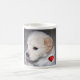Perrito del golden retriever con una taza roja del corazón