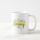 ¡Comience la su derecha del día libre con un recordatorio amistoso de ser feliz! Esta taza ofrece una salida del sol dibujada mano con las palabras, "yo piensa que apenas seré hoy feliz" puesto letras alrededor de ella.