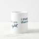 Taza que ofrece diseño con el texto "que pienso que por lo tanto tengo razón".