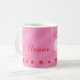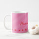 La taza personalizada que ofrece una mariquita roja con las flores rojas hermosas y rosa raya el fondo. Diseño lindo y de la diversión para el special para los chicas. Regalo conocido adaptable.