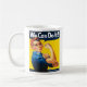¿Falta de la motivación? ¿Necesitando un poder de la niña? Intente esta mirada retra Rosie la taza temática del remachador para el tamaño. El diseño en la taza ofrece al Rosie icónico el remachador, estrella de un poster americano WW2 del vintage, doblando sus músculos poderosos diciendo que "podemos hacerlo!" a sus americanos de la hermana, como ella urgeswomen a trabajar en fábricas para ayudar al esfuerzo de la guerra. El poster famoso del artista J Howard Miller muestra a Rosie vestido en sus guardapolvos azules de la marca registrada y pañuelo de los años 40 rojos y blancos del polkadot.