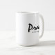 " Ruegue el ~ deje a dios que la preocupación" se imprime a la derecha de esta taza clásica.