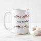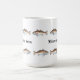Comience la su derecha del día libre con esta taza que ofrece un salmón artístico creado a mano en el ordenador dispuesto en dos filas que hacen frente en direcciones opuestas. Personalice en el centro de las filas de salmones usando la plantilla.