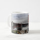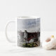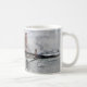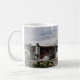 Taza blanca del tamaño estándar 11oz con un ilustracion de puente Golden Gate de San Francisco.
