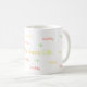 taza blanca con sano. Feliz. Vida. ¡palabras de la sabiduría!