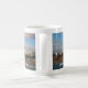 Una opinión panorámica de la hermosa vista de la playa de Santa Mónica. Las altas subidas de la ciudad se oponen contra un cielo azul bonito, y las nubes hinchadas que empapan para arriba los rayos apenas del sol poniente de rosas pálidos.