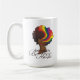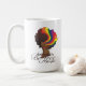 Esta taza es mi la suya y la suya línea. En un lado de la taza es la imagen de una mujer afroamericana. Ella tiene pelo natural, con las rayas del arco iris. Las rayas del arco iris representan la bandera de LGBT. Uno el otro lado de la taza es mi logotipo.