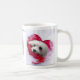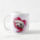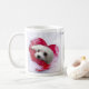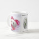 Taza blanca bonita con una imagen linda pero dramática del corazón de Snowdrop el maltés.