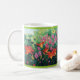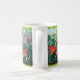Una taza clásica con los daylilies anaranjados rojos hermosos, las flores del fucsia y las vainas vining de la semilla de amapola basados en una pintura al óleo por Joan C. Thomson de un jardín en el Shenandoah Valley de Virginia