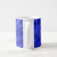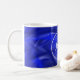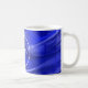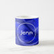 Taza de café azul del monograma del remolino con el diseño y el nombre blancos del círculo.