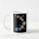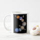 Taza blanca clásica con el gráfico de la NASA de los planetas de la Sistema Solar modificada levemente por Unique3DDigital.com.