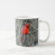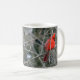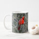 El cardenal rojo brillante con su escudo rojo real se destaca en una taza de cerámica. ¡Disponible en varios tamaños y estilos, este pájaro rojo brillante coge el ojo!