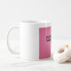 Taza clásica blanca con una cita maravillosa escrita sobre un fondo rosado. Nos dice disfrutar de las pequeñas cosas, como en el período posterior realizaríamos que eran las cosas grandes.