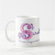 Letra dibujada mano adornada con su propio nombre empezando por la taza del significado de S y del nombre. El capital bonito S del corazón y de la flor doodled el diseño tipográfico que ofrecía corazones y las flores y la princesa de Sarah de las palabras. Compasivo y fuerte en rosa y púrpura. Arte y diseño únicos del © de Sarah Trett. www.sarahtrett.com para www.mylittleeden.com en zazzle