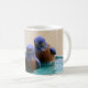Dos Bluebirds occidentales que toman un baño en un día frío. Los pájaros limpios permanecen calientes.
