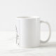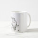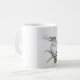 Una taza blanca imprimió con un dibujo de lápiz blanco y negro simple de un usignuolo hermoso del canto.