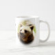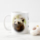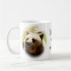 Taza blanca clásica con las fotos de una relación el frente y la parte posterior y un lugar para su propio texto en el centro. Personalizable.