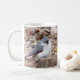 Esta taza de café ofrece un pequeño Titmouse copetudo dulce que descansa sobre un tocón de árbol en ambos lados. Una taza agradable para los amantes animales del pájaro. Esta imagen del pájaro está disponible en varios los estilos de la taza del café y del viaje.