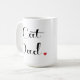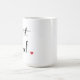 Taza blanca con las letras negras y un corazón rojo en el extremo.