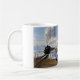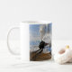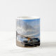 Una taza con una imagen de un tren en invierno. ¿O es verano?