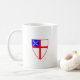 El escudo episcopal (o episcopalista o anglicano) en toda su simplicidad honra esta taza blanca elegante.