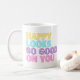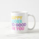 Anímate a ti mismo y a otros a encontrar la felicidad con esta taza colorida de "Feliz te queda muy bien" ¡Colección coincidente disponible!