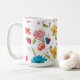 Una pintura original de acuarela impresa en una taza, flores y bayas caprichosas y alegres esparcidas por este diseño. Pintura de Kristina Anderson