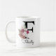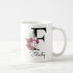 Taza inicial boho rosa moderna, regalo perfecto de Navidad o cumpleaños para una hija, madre, tía o hermana. Personalizada con el monograma de la letra F y un nombre. Otras letras disponibles en mi tienda.