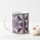 Bloque acolchado en modelo púrpura y blanco del "carrete". Ocho carretes giran alrededor de un centro de la púrpura oscura. Un estampado de flores púrpura es el "hilo " s (y la frontera cuadrada). El color blanco los diamantes y los triángulos, y la púrpura con las líneas colorea el octágono central y los trapezoides externos. El cuadrado del edredón se repite 3 veces alrededor de la taza.