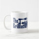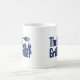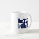 Esta taza de cerámica se muestra con un estampado de PADRE A LA PARRILLA.