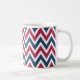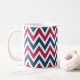 Un patrón de chevron rojo, blanco y azul decora esta taza de café patriótica. El diseño es de arte original.