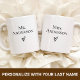 Celebra el amor y los nuevos comienzos con esta Taza Personalizada con el Apellido de los Recién Casados, un recuerdo significativo diseñado para parejas que comienzan su para siempre. Con palabras románticas como Esposa y Esposo o divertidas como Esposita y Maridito, esta taza es un regalo reflexivo y elegante para compromisos y bodas. Esta taza de cerámica personalizada para compromiso es perfecta como regalo de boda para la pareja, un dulce regalo para recién casados, o incluso una divertida adición a los regalos de la fiesta de despedida de soltera. Personaliza con el nuevo apellido compartido de la pareja, la fecha de la boda, o un título especial para crear un recuerdo único que atesorarán cada mañana. Perfecta para el café en su primer hogar juntos, mañanas de luna de miel, o fines de semana acogedores como marido y mujer.