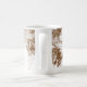 Una taza de café con un grabado tropical de palmeras vintage en una playa de arena y hermosas nubes sobre olas tranquilas del océano. Haga clic en Personalizar para agregar su nombre o mensaje.