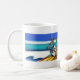 La taza Surf Australia es para surfistas, fanáticos del surf, bebedores de café, coleccionistas de tazas, amantes de Australia, amantes de los canguros y fanáticos de los dibujos animados. Surf Australia es arte original de dibujos animados y caligrafía de Steamy Raimon.
