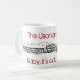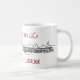 una gran taza de la calidad con un logotipo distinguido; motel histórico en verde de la primavera; un diseño arquitectónico de Frank Lloyd Wright